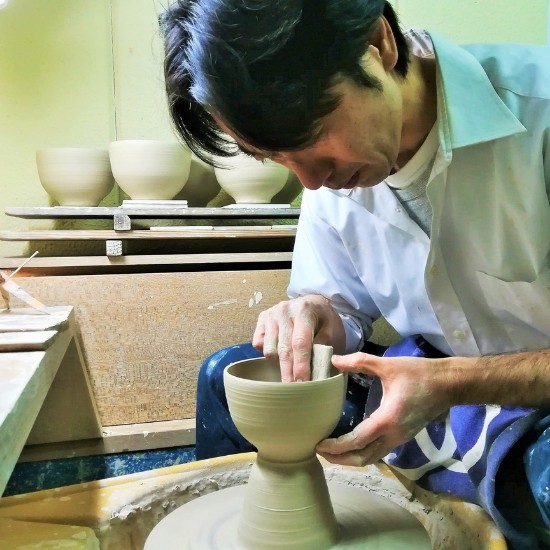 当窯元の女性職人が手に持った写真です。小さめの女性に手にもしっくりくる小ぶりのサイズ。
